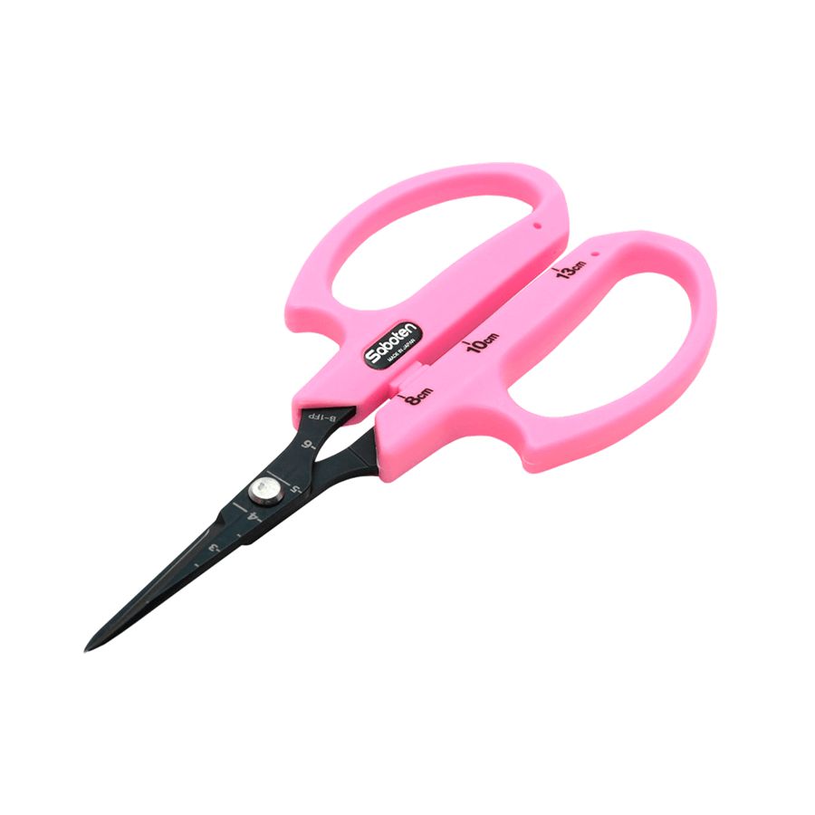 Além disso, a parte de trás das laminas são arredondadas, para evitar que durante o uso, frutos sejam danificados. Por fim, a tesoura possui marcações de 3cm a 13 cm que auxilia na padronização dos cachos e ramos. Uma tesoura leve, resistente e de altíssima qualidade. É maior eficiência e produtividade para seu cultivo. A Saboten, uma das mais tradicionais marcas de ferramentas japonesas foi fundada em outubro de 1932 na cidade de Miki, cidade produtora de ferragens mais antiga do Japão.